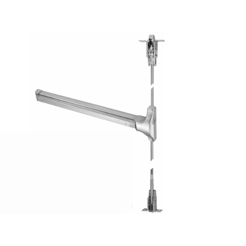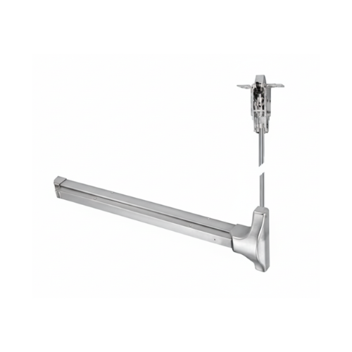The Accentra 2160 Concealed Vertical Rod Exit Device is an exit-only solution (outside trim sold separately) designed for wood and metal doors where one or two-point latching is needed. Because it provides secure exit control, it is suitable for paired doors up to 10′ in height and meets both panic and fire-rated requirements. In addition, a Less Bottom Rod (LBR) option is available for doors where the bottom rod is not required.