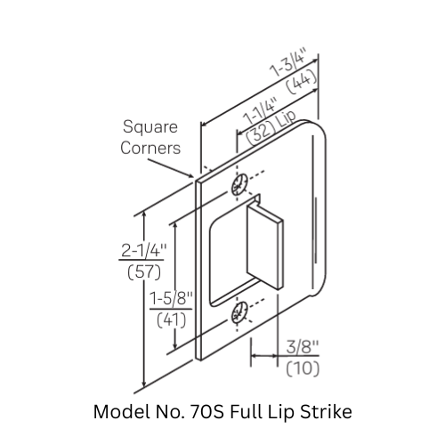- 70S Full Lip Strike (Optional): 2-1/4″ x 1-3/4″ x 1-1/4″ with a full lip anti-rattle tab.