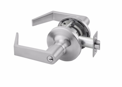 Built for classrooms and utility rooms, this keyed lever offers strong security with a deadlocking latch and key-controlled outside access. The inside handle always stays active, ensuring fast and safe exit at all times.