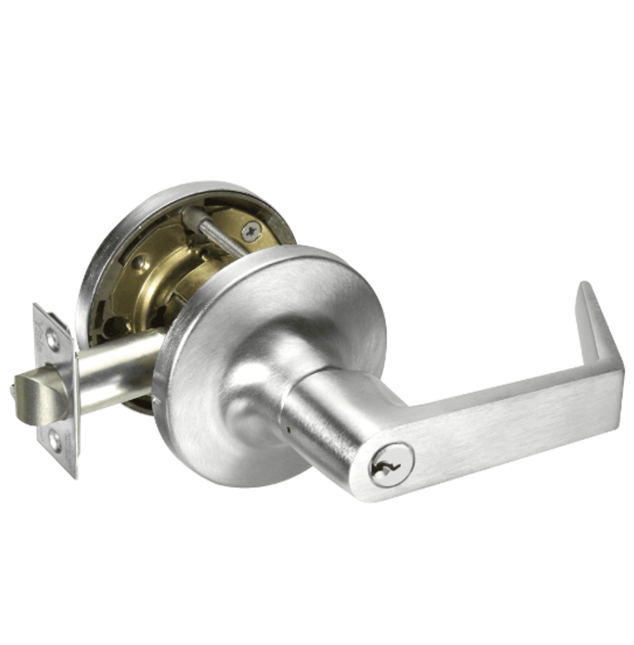 This lever ensures safe, reliable operation for communicating or closet doors, even in limited spaces. Its deadlocking latchbolt and free-wheeling design protect against tampering while allowing smooth egress.