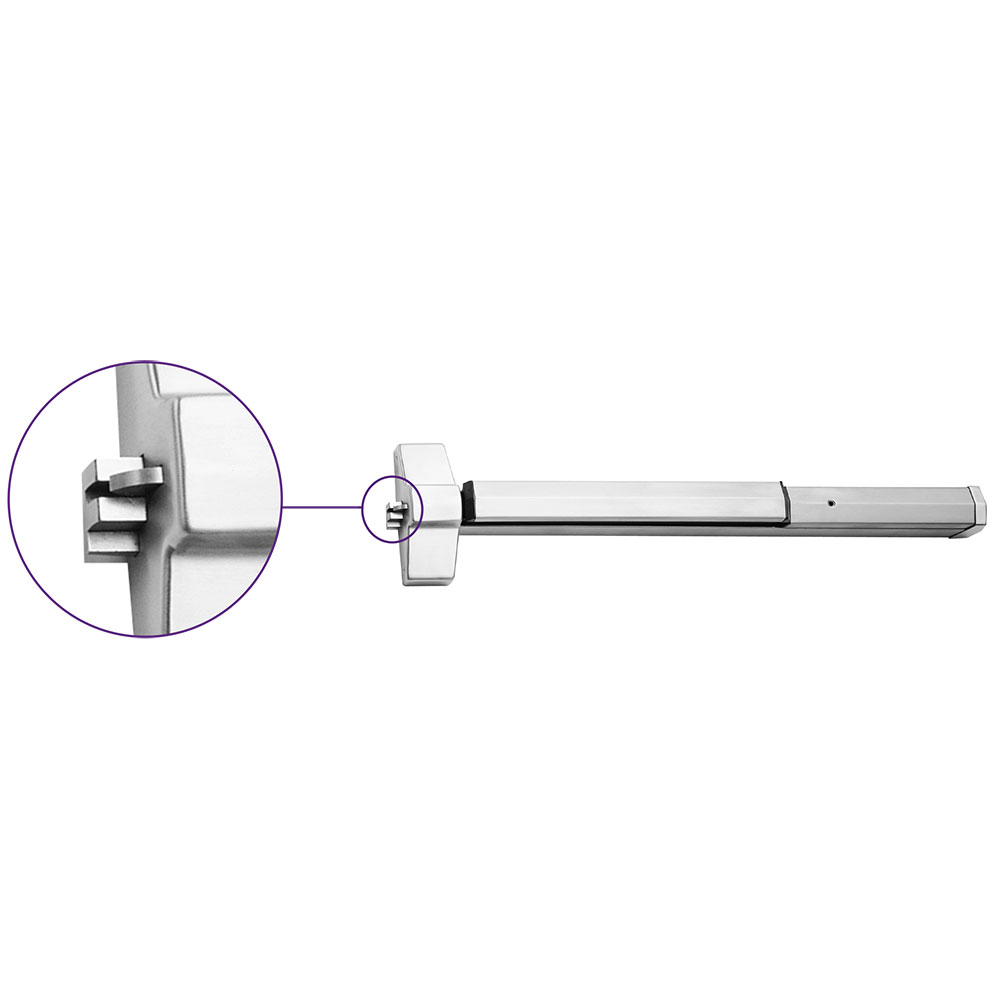 In addition, this rim exit device is built for easy installation and long-term use. Because it is non-handed, it installs quickly on both left- and right-hand doors. Moreover, it can be retrofitted onto existing 7100 Series templated doors, making it a practical upgrade for improved security.