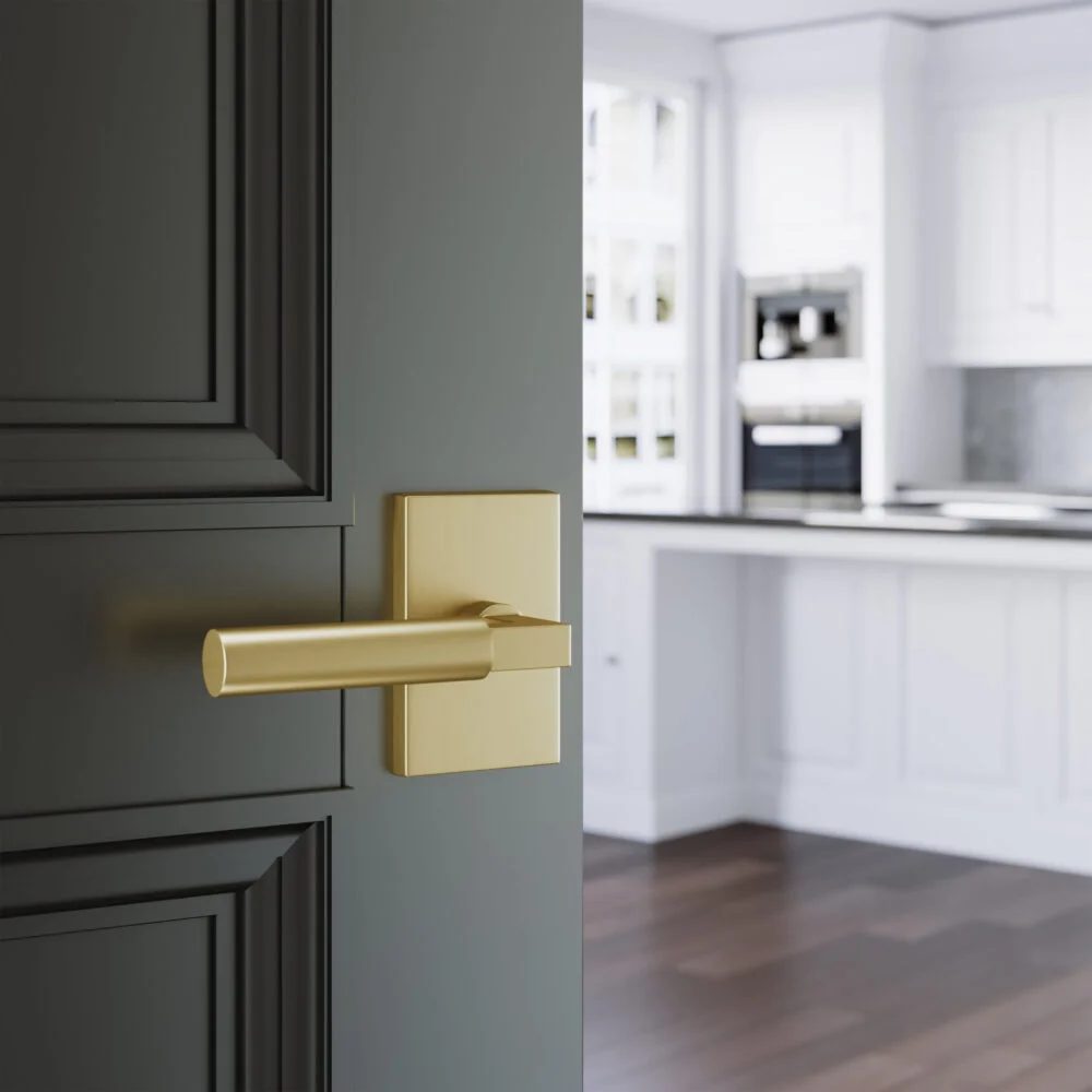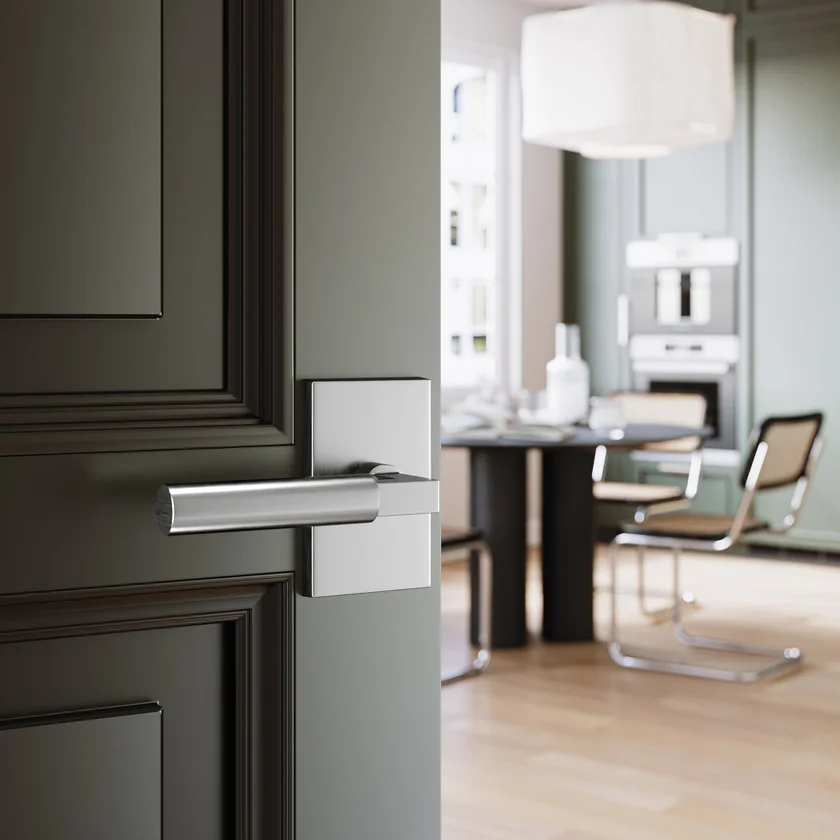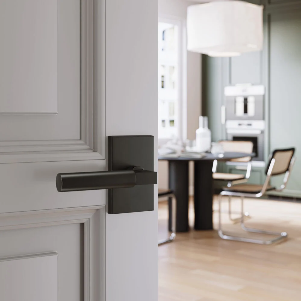 A sleek lever with a clean rectangular rosette that brings modern balance to interior spaces. Its smooth, minimalist design suits both contemporary and transitional interiors.