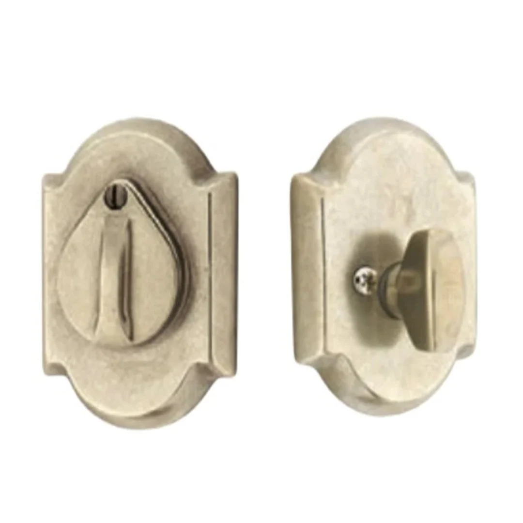With its arched profile and 3 bronze patina finish options, the #1 Sandcast Bronze Deadbolt is not only a secure choice but a stylish one, too. Its unique design element, a rotating flap that conceals the key cylinder, adds a touch of playfulness to a traditionally practical feature, making it a fun and functional addition to your entryway.