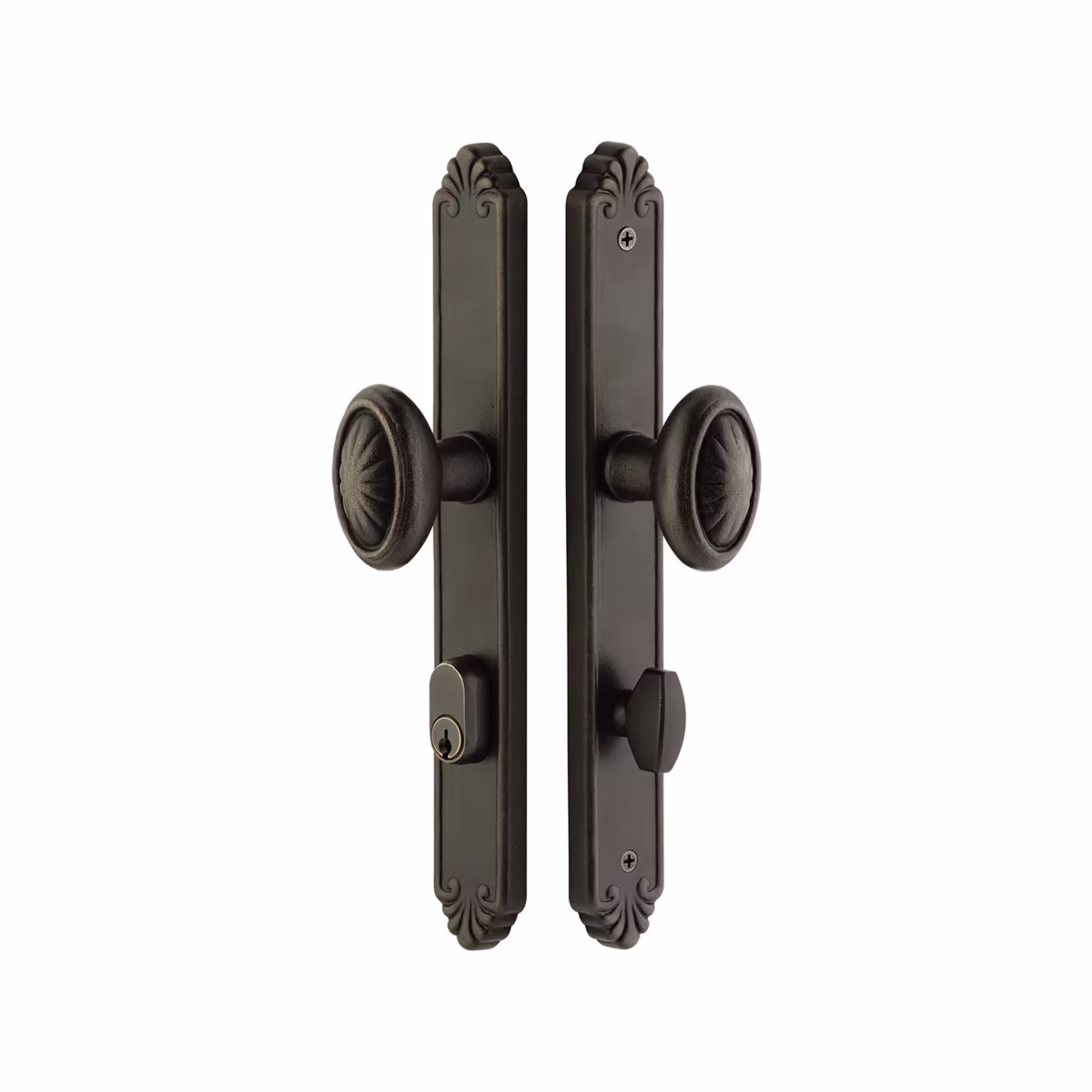 Enhance your space with a slim, elegant lockset inspired by classic Old-World design. Customize it with your choice of knobs or levers for a warm, refined finish.