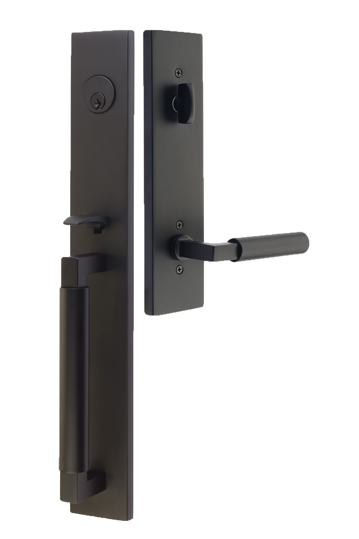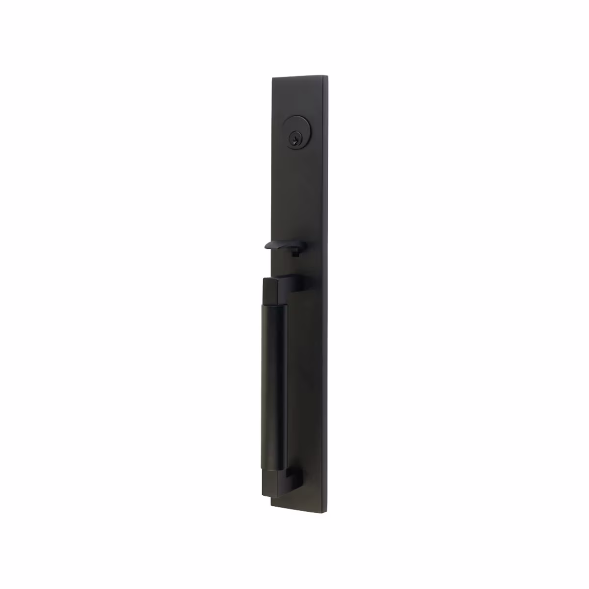 A sleek full-length handleset that blends modern minimalism with reliable strength, offering smart-lock compatibility and customizable finish options for any entryway.