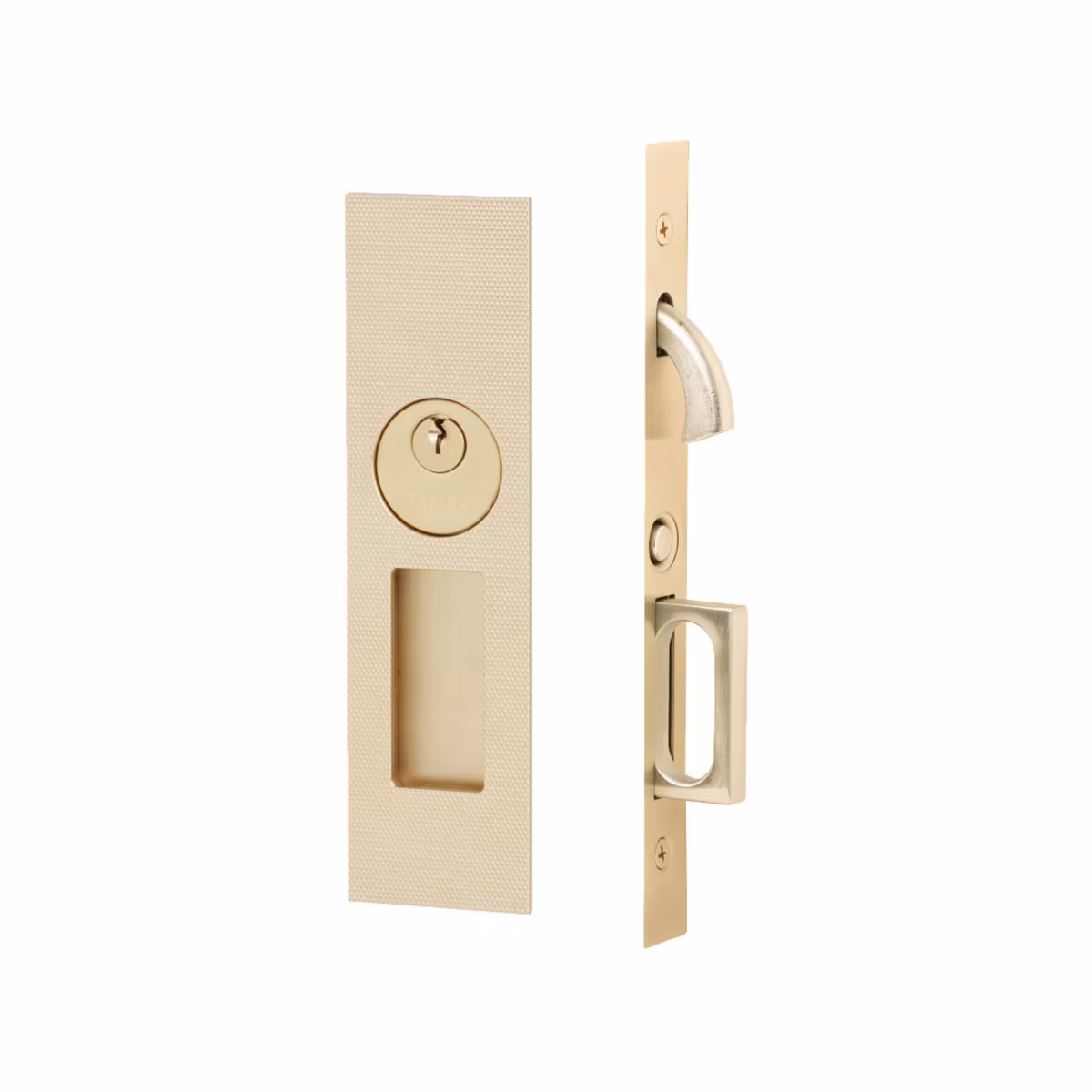 Building on the success of our popular knurling detail, Emtek introduces the Knurled Narrow Modern Rectangular Pocket Door Mortise Lock. Available in Keyed, Privacy, Passage, or Dummy functions, with 7 finish options. Includes strike plate and screws; handing not required.