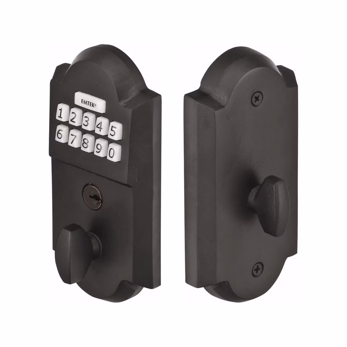 Experience keyless convenience with a beautifully patinated bronze deadbolt that evolves over time. Durable, secure, and crafted for timeless style.