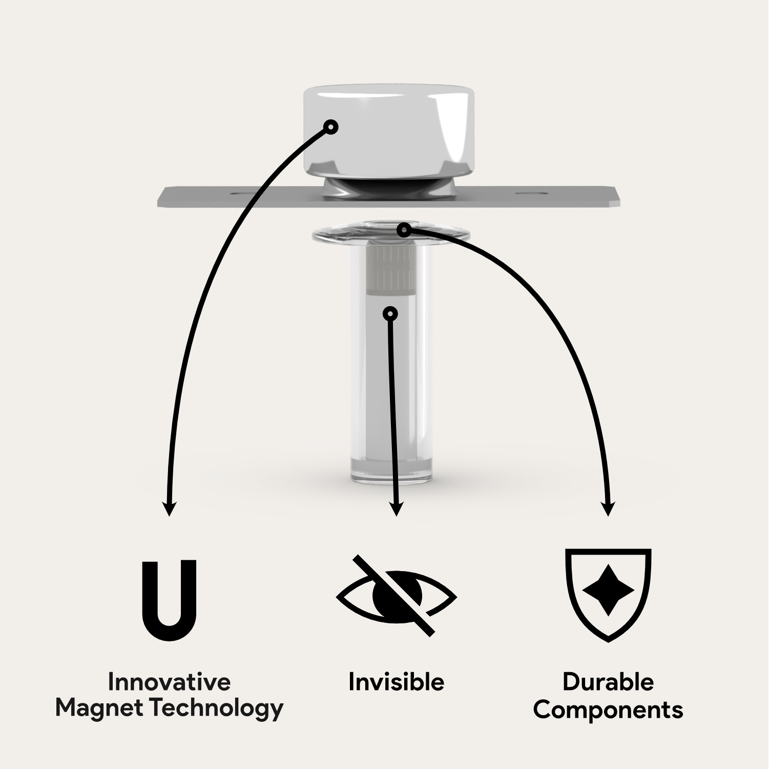 - Magnet Diameter: 15/16″ (concealed magnetic hold)