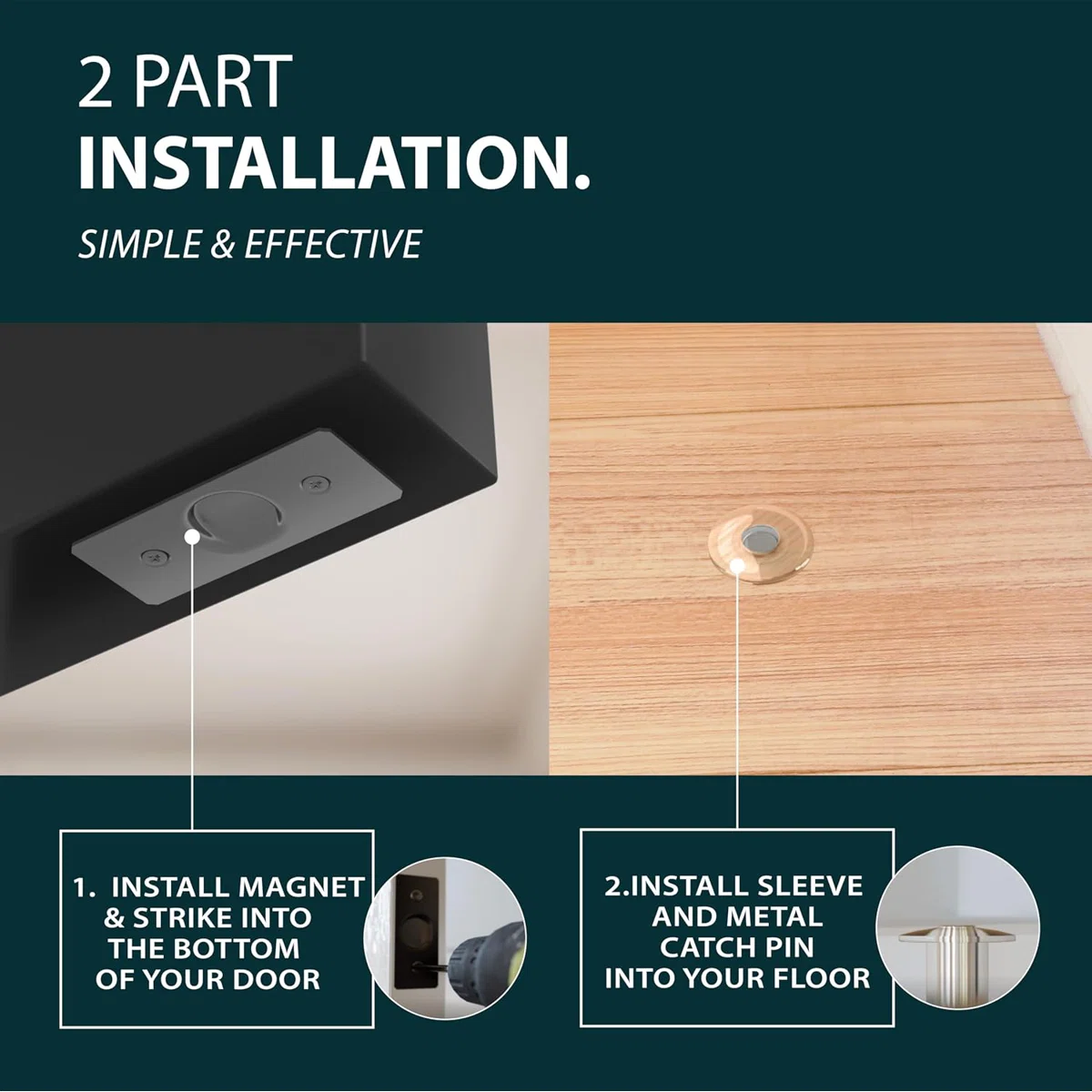- Floor-Mounted Design: Ensures stability and prevents doors from swinging freely
