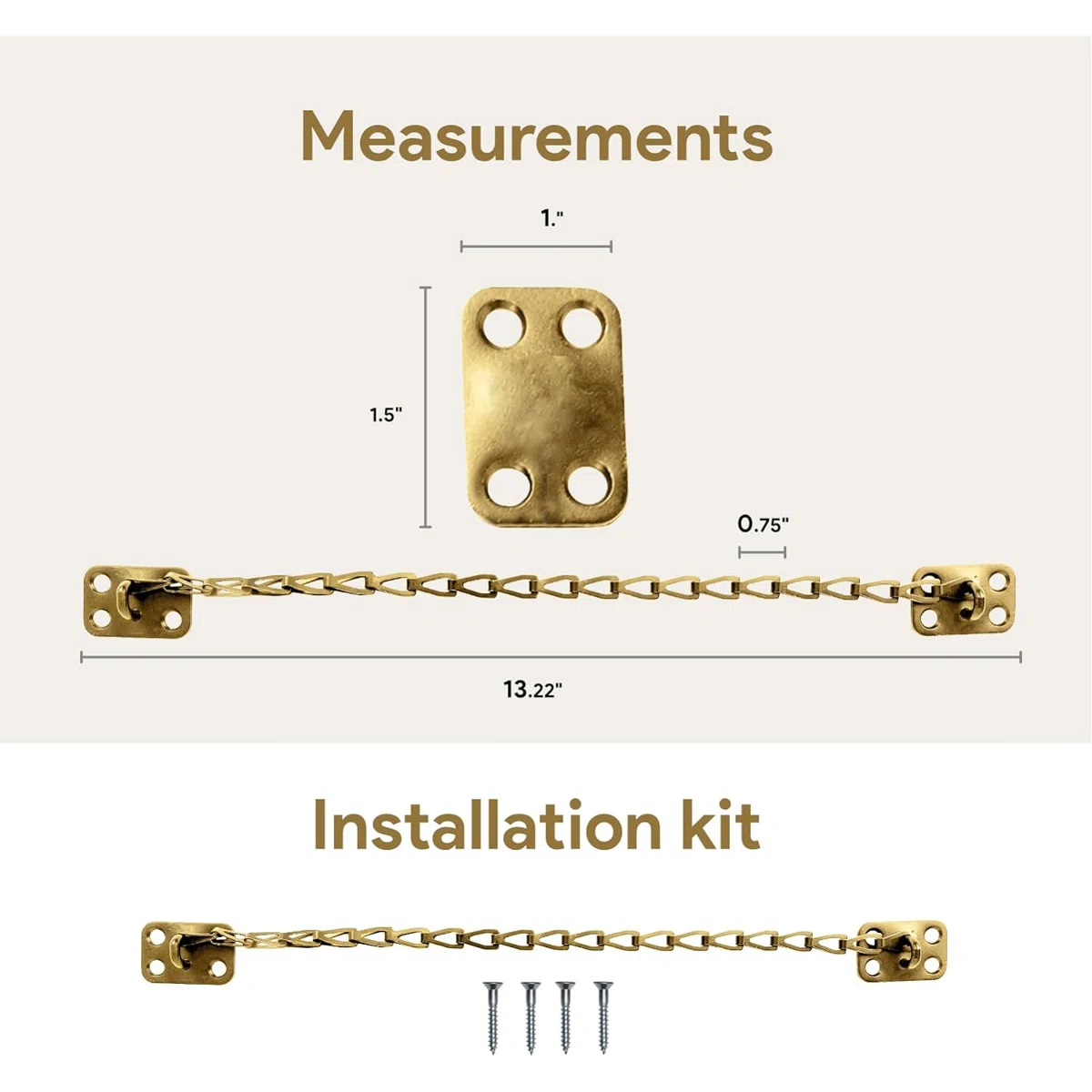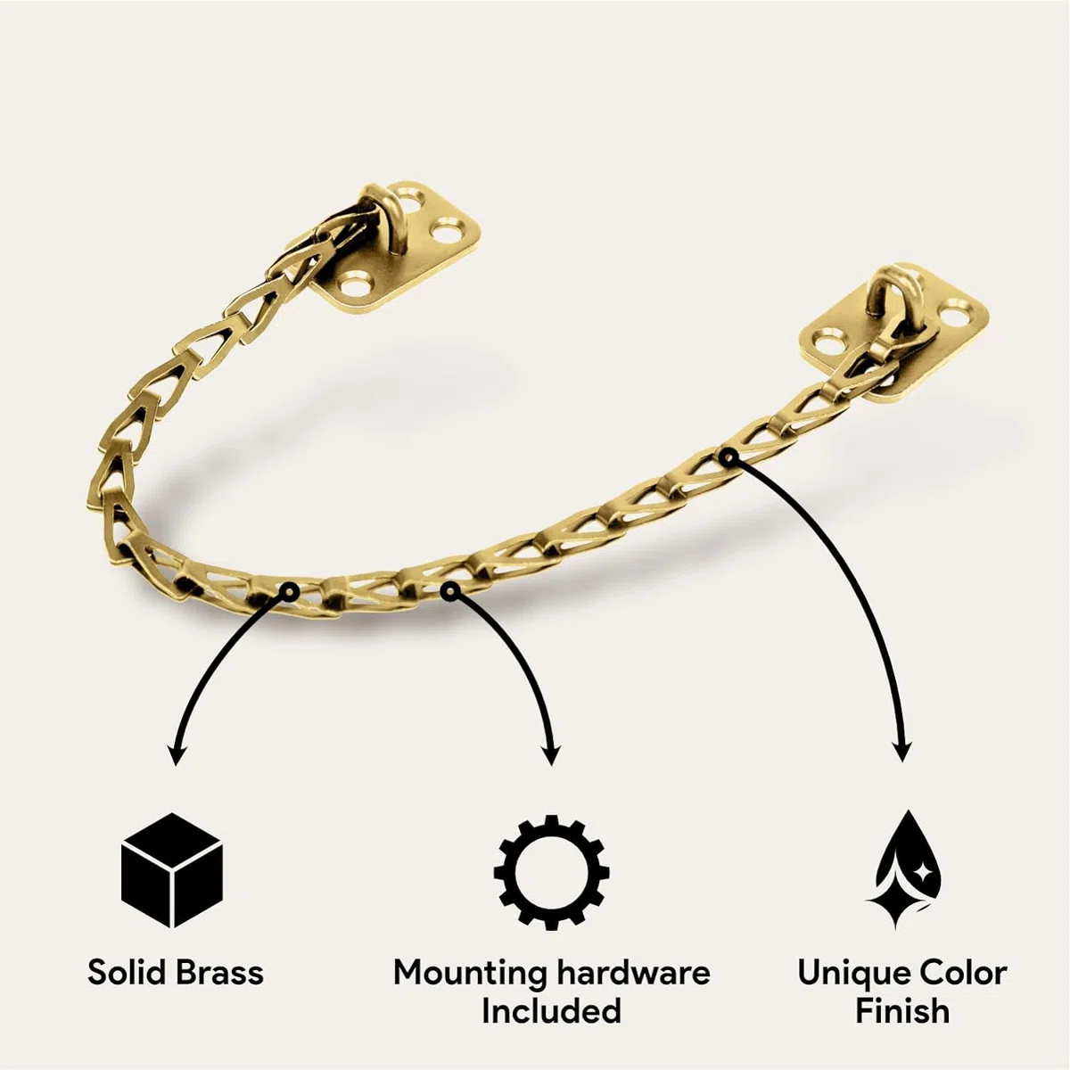- Included in Package: Chain, mounting plates, screws