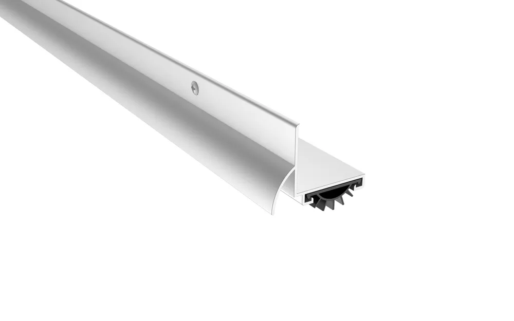 The Pemko 210_V L-Shaped Door Shoe is a surface-mounted solution designed to fit all door thicknesses, providing reliable protection at the bottom of doors. Featuring an Eco-V (vinyl) insert, this door shoe blocks smoke, fire, airflow, light, and unwanted elements while enhancing privacy and energy efficiency. Its rain drip design deflects water from the door bottom, offering superior weather protection.