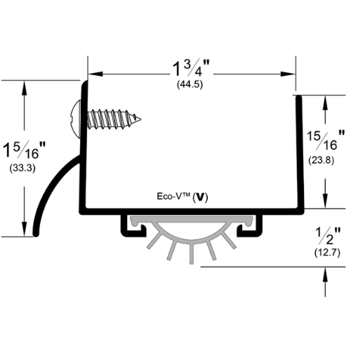 The Pemko 216_V U-Shaped Door Shoe is a fire- and smoke-rated solution designed to fill the gap under 1 3/4″ thick doors while maintaining a clean, finished appearance. Featuring a durable Eco-V (vinyl) insert, it effectively blocks airflow, light, smoke, and fire, providing privacy and energy efficiency. The integrated rain drip design deflects water from the door bottom, ensuring superior weather protection.