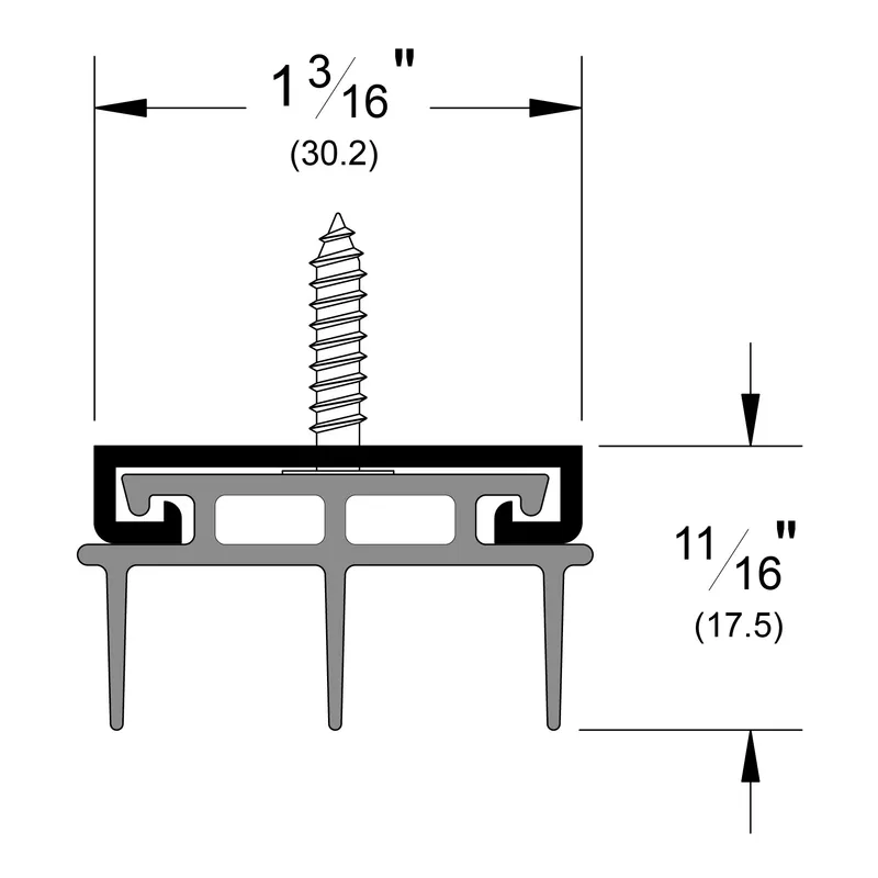 The Pemko 2343_V U-Shaped Door Shoe with Eco-V Vinyl Insert is designed to effectively seal the gap beneath doors while maintaining a clean, low-profile appearance. Featuring a simple bottom plate design with triple-fin gaskets, this door shoe helps prevent infiltration of light, moisture, dust, drafts, air, sound, smoke, and fire.