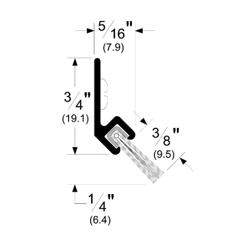The 3/8″ nylon brush is densely compressed and set at a 45° angle in an aluminum retainer for optimal contact with surfaces. Moreover, the brush remains flexible from -40°F to over 400°F, ensuring reliable performance in extreme temperatures. Furthermore, it conforms to irregular surfaces such as carpet, stone, and grout lines, providing an excellent seal with minimal closing force.