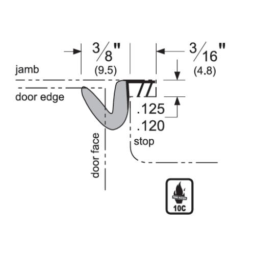 For proper sealing performance, the minimum space between the door face and the stop should be 3/16″, while the maximum space should not exceed 5/16″. This gap range ensures the foam compresses correctly and maintains an effective seal.